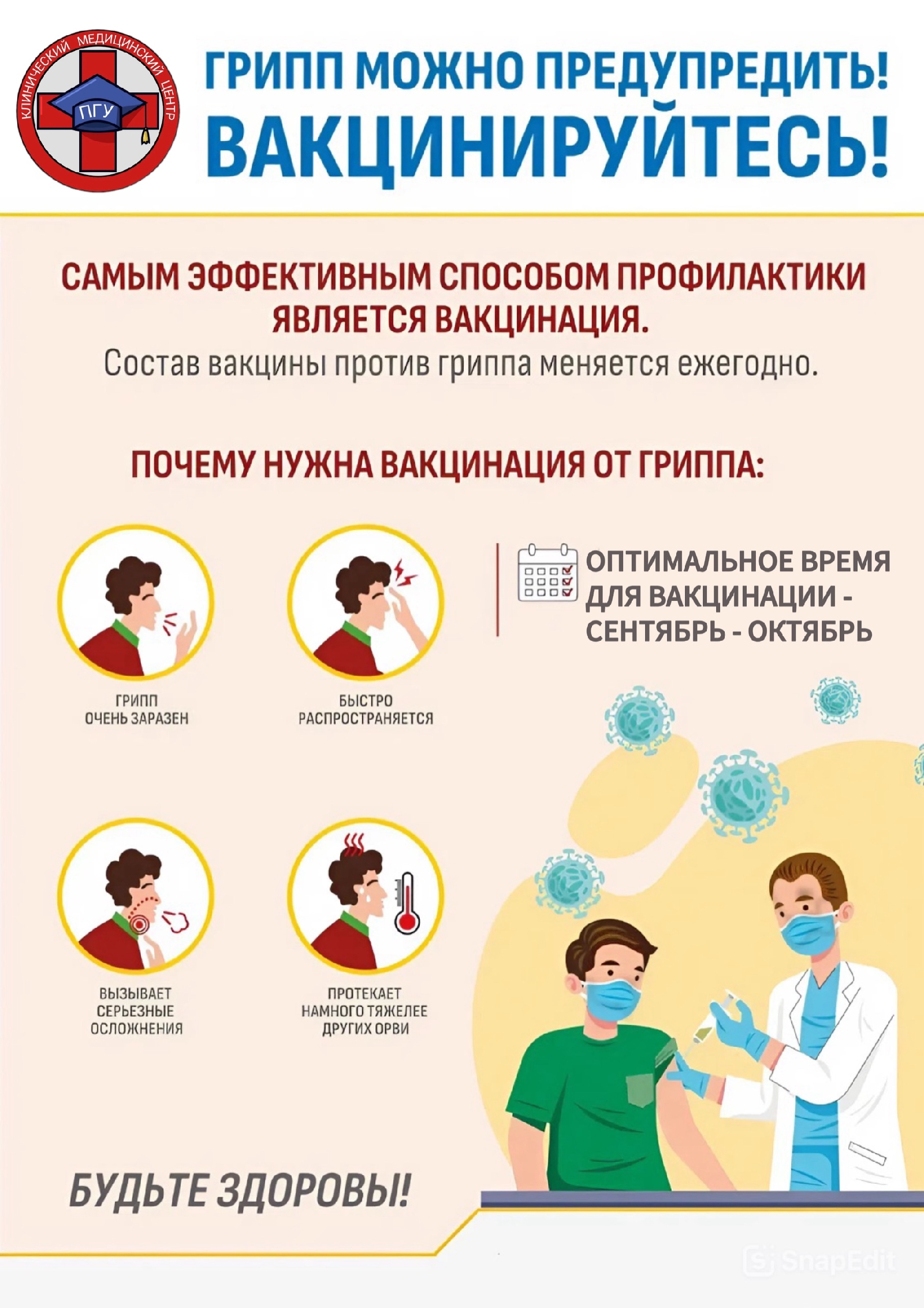 Клинический медицинский центр ПГУ приглашает вас на сезонную вакцинацию от гриппа!